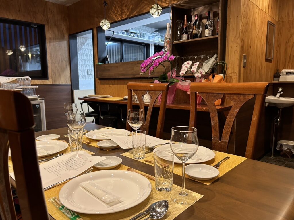 コース料理ですが、普段着のままお箸で食べていただき、リラックスした雰囲気で食事を楽しんでいただきたいと思っております。お子様連れでも気兼ねなくお越しください。